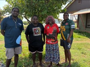 Fig 1. Connecting together researchers from Nauiyu and Peppimenarti. Left to right: Karl Lucanovic and Annunciata Wilson (Peppi), Latisha Marrayntya and Tynisha Cronin (Nauiyu)