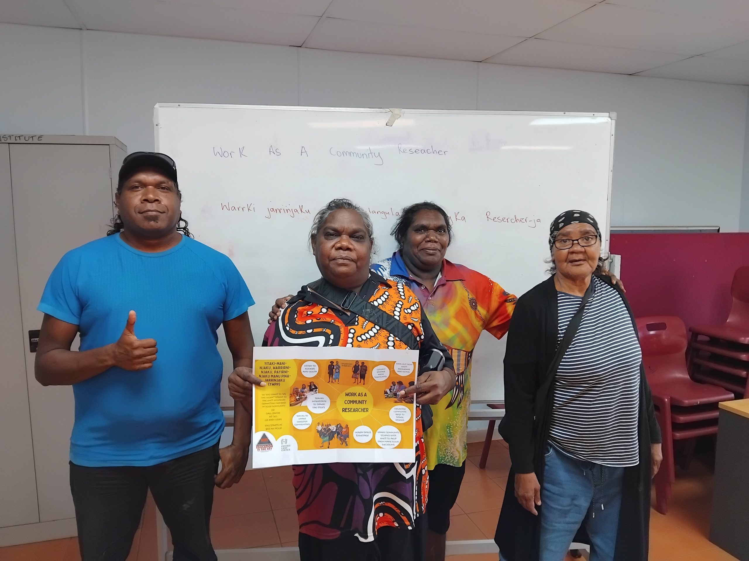 We want people to be ngampurpa (willing and happy) to share their story about themselves, especially around community – what’s happening to them. After they do an interview, some people are ngampurpa to get involved and be a researcher with us. We want to be there to make them feel comfortable and happy.